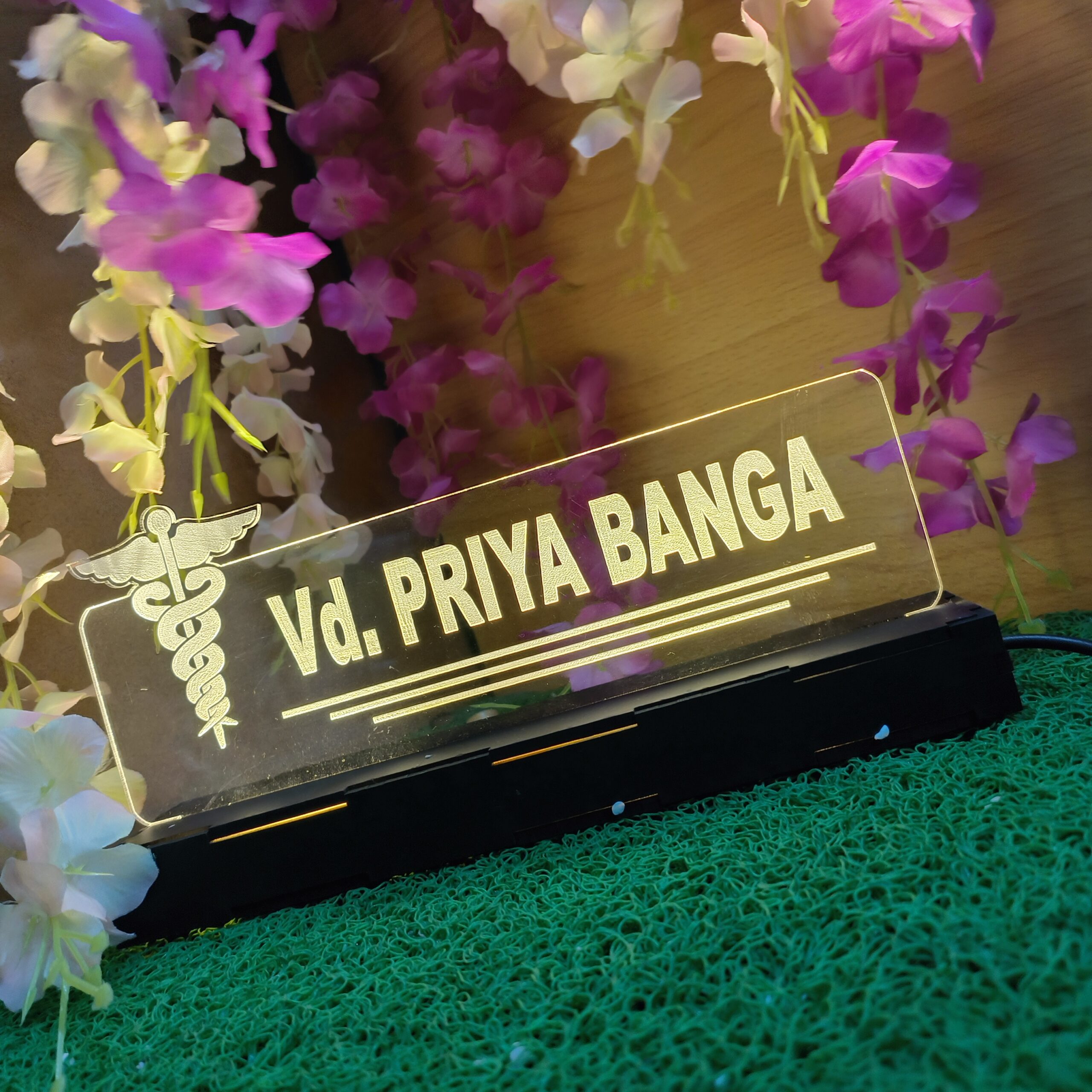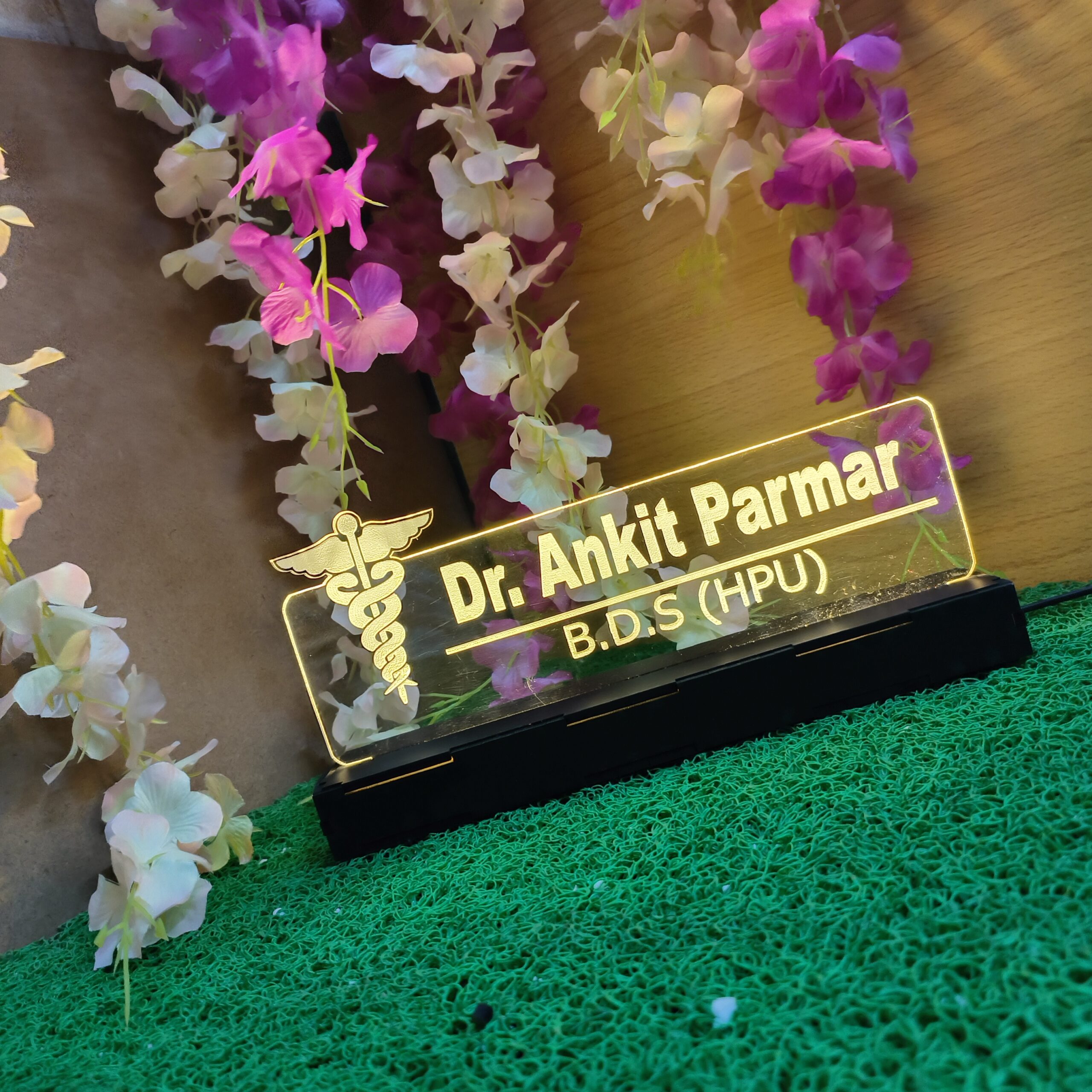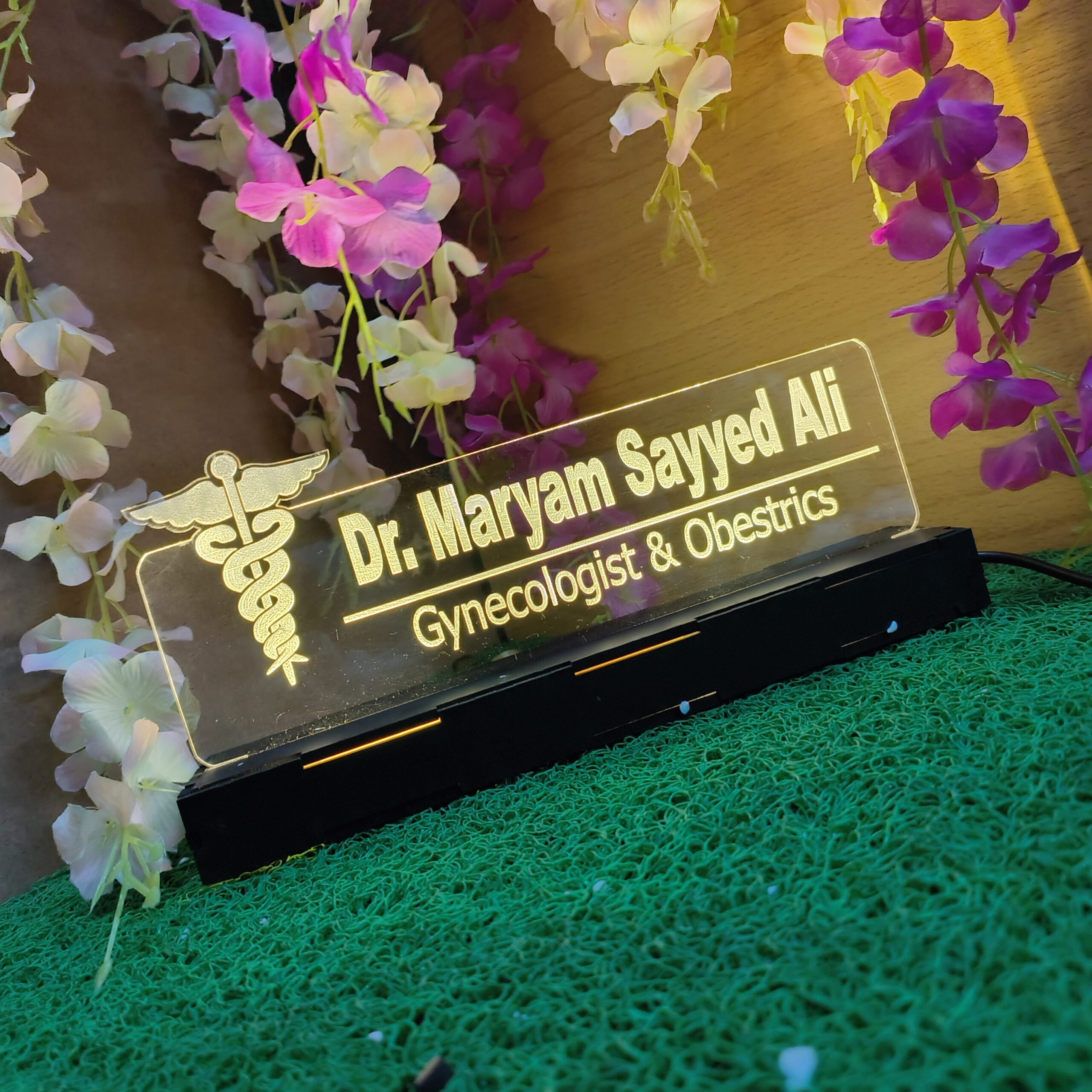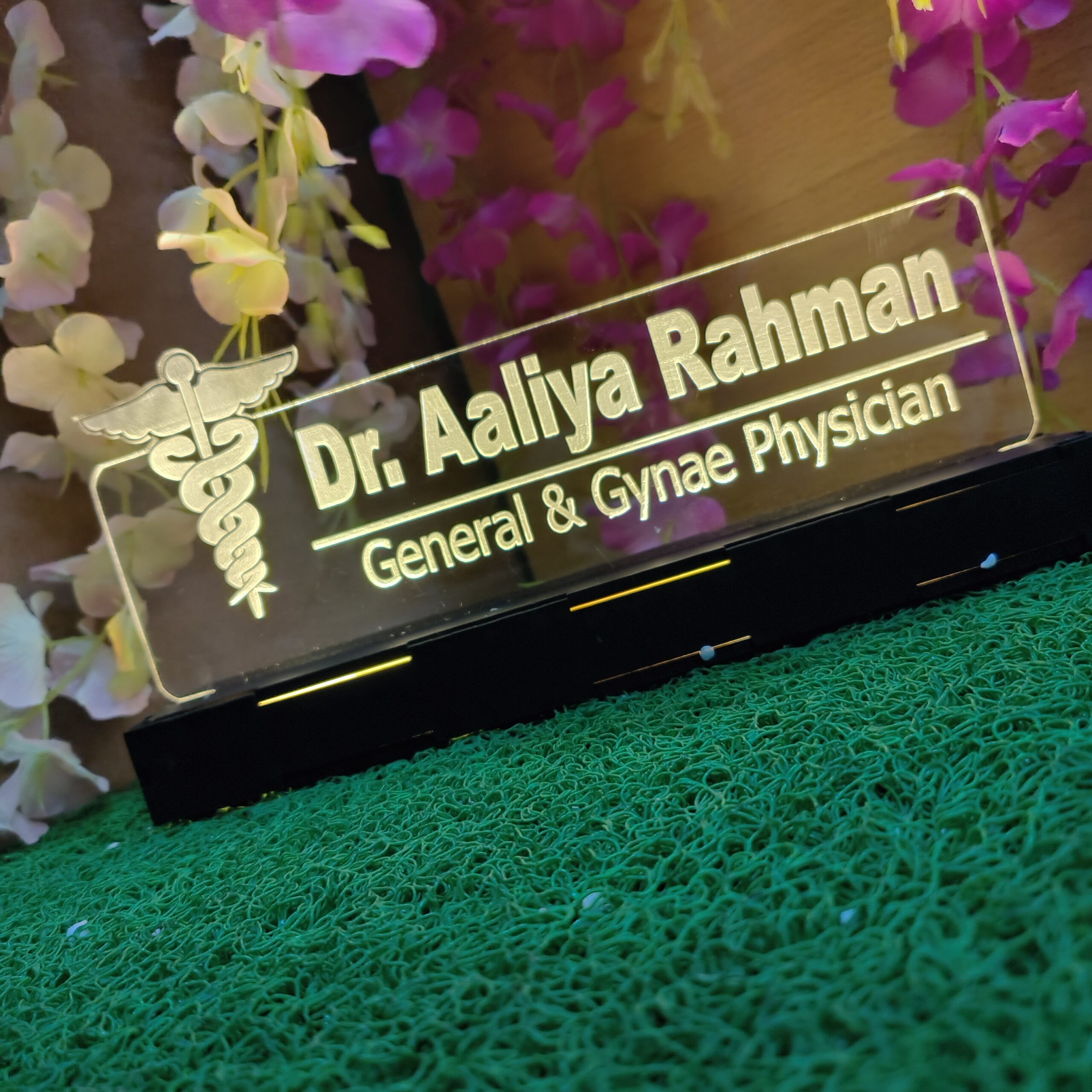 Made using high-quality acrylic with LED illumination, this doctor table name plate is ideal for clinic desks, chamber tables, and office workstations. The clear lettering and soft lighting make the name plate easy to read and visually appealing.