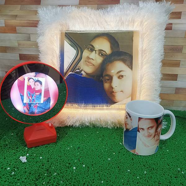 Delight your loved one with this special hamper featuring an Led Cushion Magic Mirror and Mug. This hamper will make a great addition to any home, adding a cozy and personal touch in the process. This collection of thoughtful items will ensure that whoever was lucky enough to receive it will be reminded of your thoughtfulness every day. Show them how much you care with this Gift Hamper.