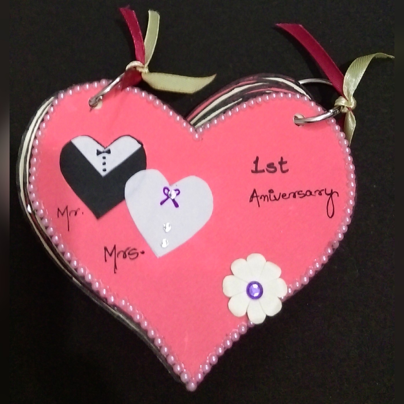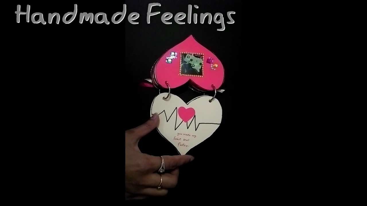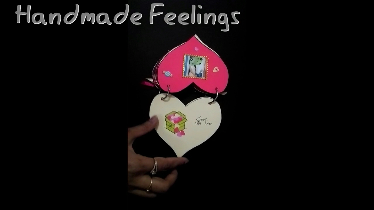 The red and cream themed heart shaped handmade mini pocket album which is very much perfect to gift your loving partner..