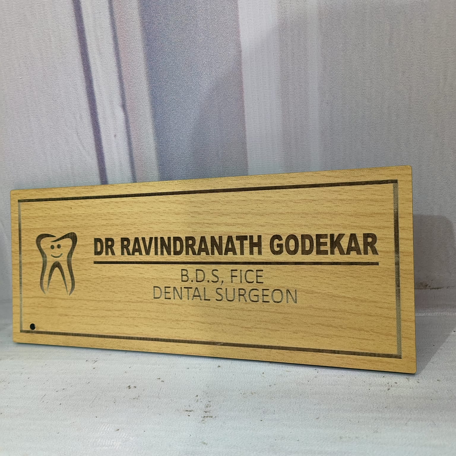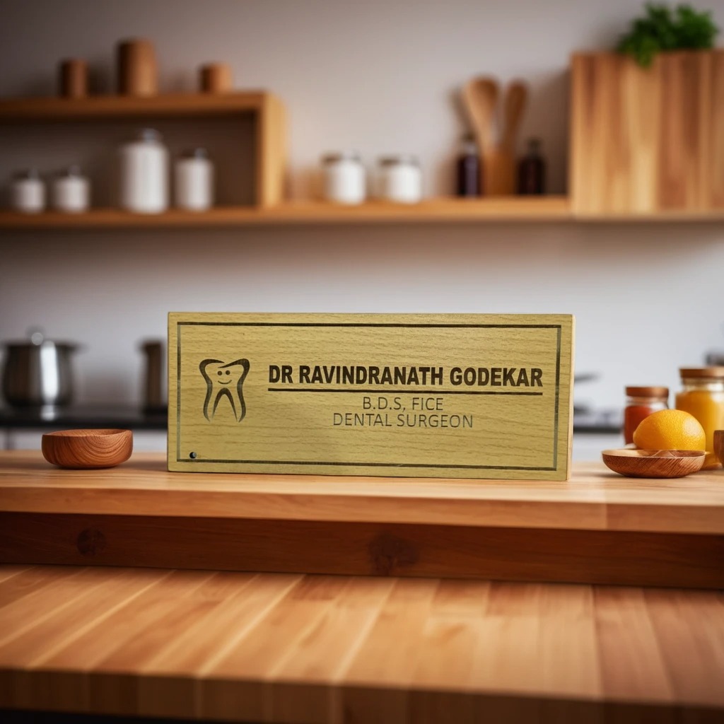 A wooden nameplate adds character and professionalism to a clinic. This name plate for doctors near me option is ideal for doctors who want a personalised and dignified display for their practice.